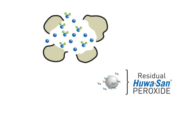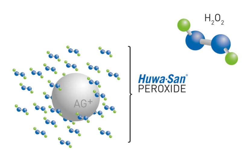 Der wesentliche Unterschied zwischen Huwa-San und normalem Wasserstoffperoxid besteht im Vorhandensein eines Stabilisierungsmittels. Da H2O2 nicht stabil ist und sich langsam in Sauerstoff und Wasser zersetzt, wird ein Stabilisator in Form einer geringen Menge Silber zugesetzt. Das Silber wird verwendet, um die Stabilität der Wasserstoffperoxidlösung zu erhöhen.