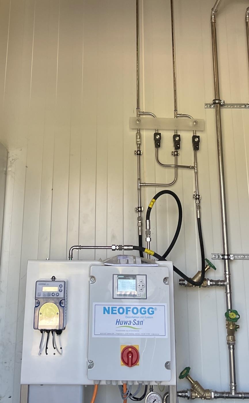 Unsere NEOFOGG®-Systeme werden nach den individuellen Bedürfnissen der Kunden aufgebaut. Sie können für kleine oder sehr große Räume konzipiert werden. Es werden ausschließlich leistungsstarke Komponenten verbaut. Um den persönlichen Arbeitsaufwand für den Kunden zu minimieren, verwenden wir eine Dosierpumpe, um unseren Tank automatisch mit stabilisiertem Wasserstoffperoxid zu füllen.